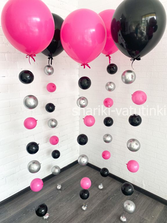 - 5 однотонных шара цепочек с пузырями (45см).