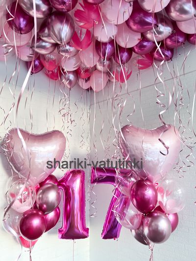 - шары под потолок (10 розовых, 25 хром, 15 браш).