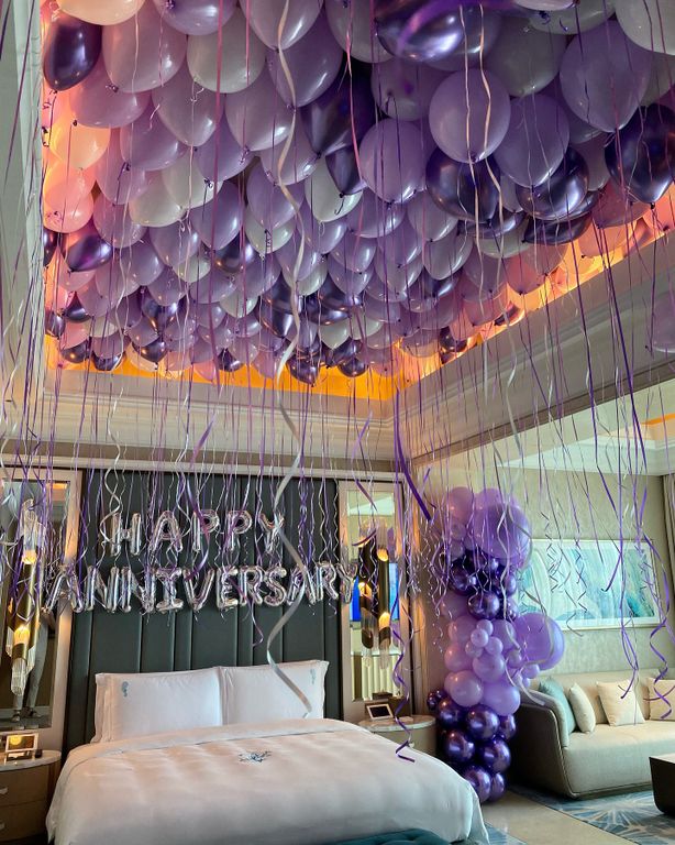 Шары под потолок, оформление в сиреневом