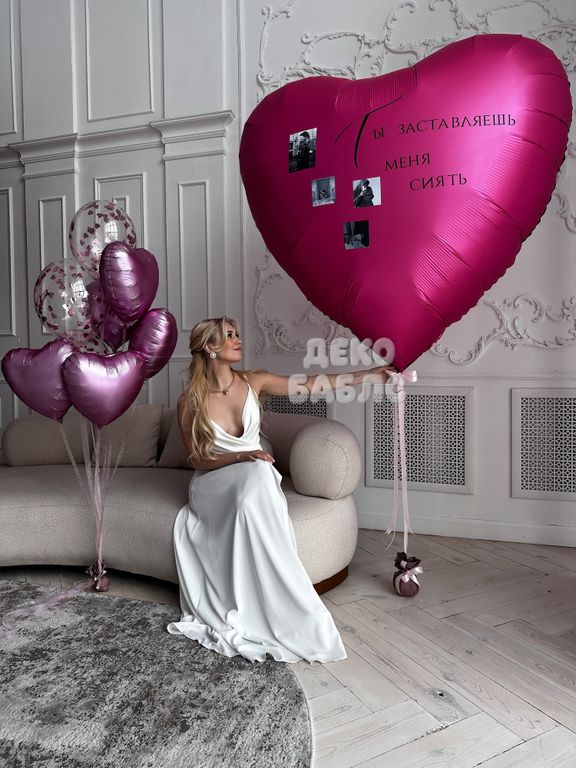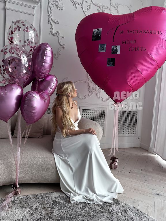 Огромные сердца с вашими фото и фонтаны шаров в малиновом цвете