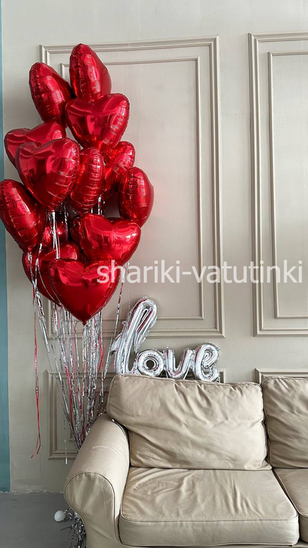 - фонтан 20 шаров с дождиком сердеца 45см