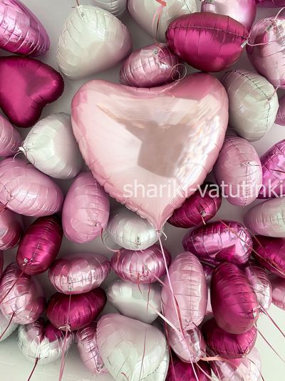 Фольгированные сердца под потолок (розовый)