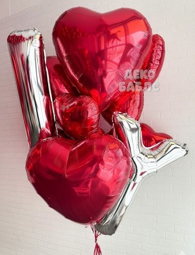 - 4 сердца 60см, 6 сердец 45см, 2 буквы 102см.