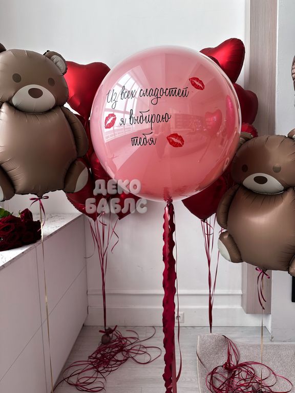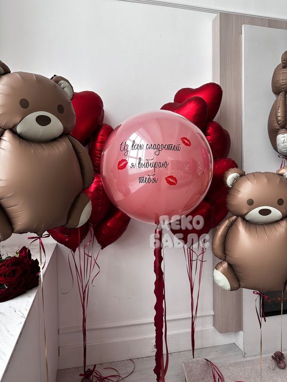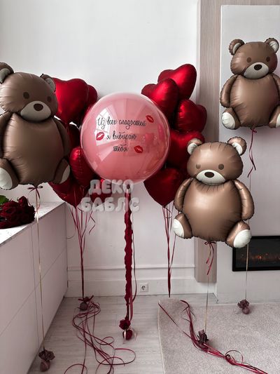 Авторский сет гелиевых шаров "Сладкое признание" с медведями и баблс романтическая инсталляция с персональным посланием, созданная специально для того, чтобы покорить сердце вашей второй половинки в этот праздничный день.