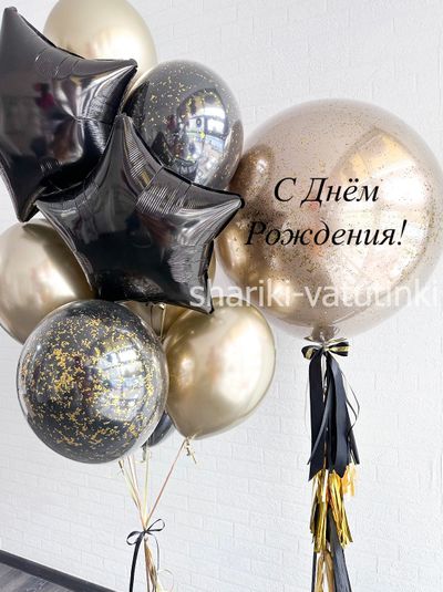 - фонтан из 10 шаров (2 звезды, 4 хром золото, 4 даблстафф),