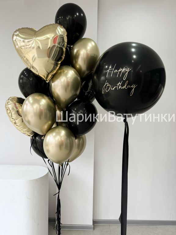- фонтан из 17 шаров на атласных лентах (2 сердца, 7 хром, 8 однотонных).