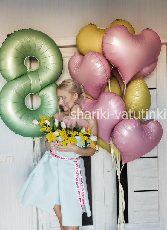 -фонтан из 10 шаров сердца люкс на атласных лентах.