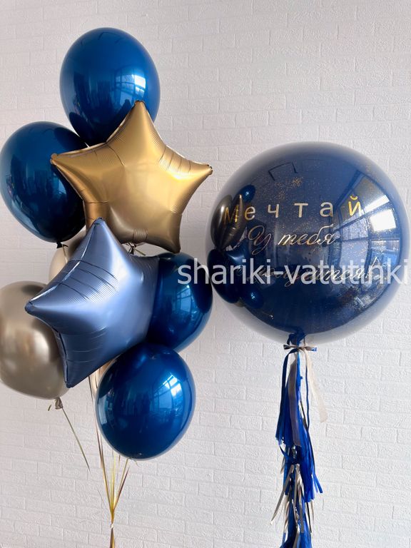 - фонтан из 9 шаров (3 хром, 4 даблстафф, 2 звезды 45см),