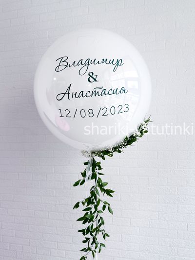 Хрустальный шар с надписью и украшением живой зеленью (ручная работа)
