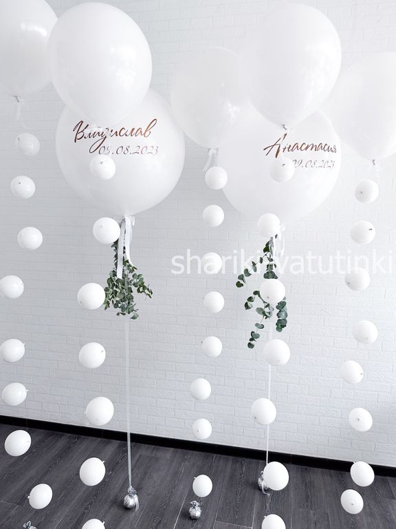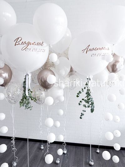 - три фонтана по 15 шаров ( 5 белых, 5 с конфетти, 5 хром).
