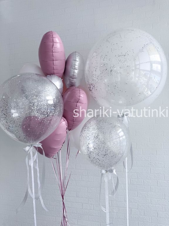 - шары на атласной ленте с конфетти 45см 2шт,