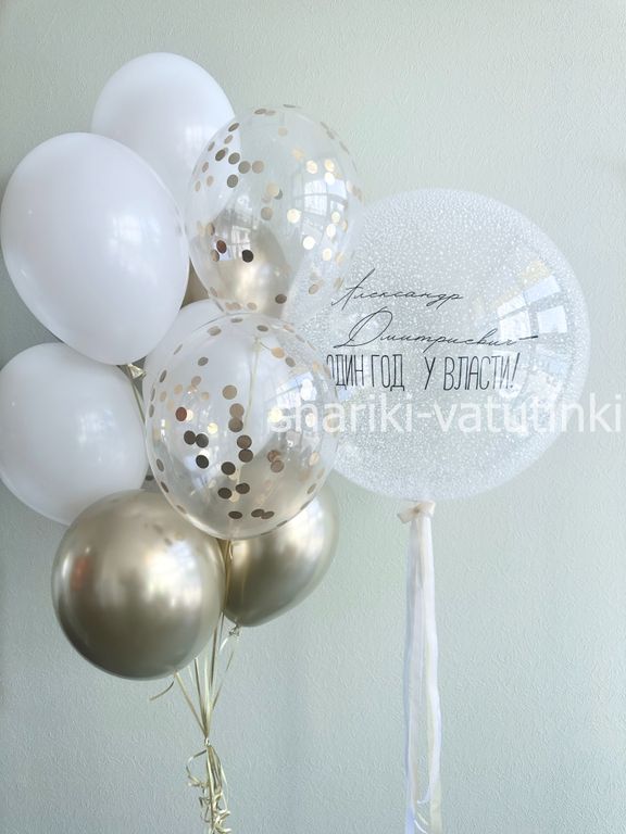 - шар bubbles с вашей надписью и декоративным бантиком;