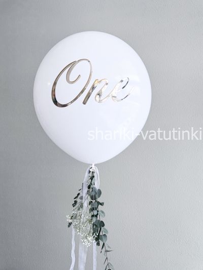 Шар гигант с живой зеленью, гипсофилой и вашей надписью.