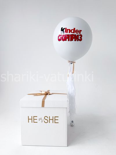 - коробка сюрприз 70см с надписью и бантом, внутри шар гигант с наклейкой Киндер, кисточкой тассел и наполнителем
