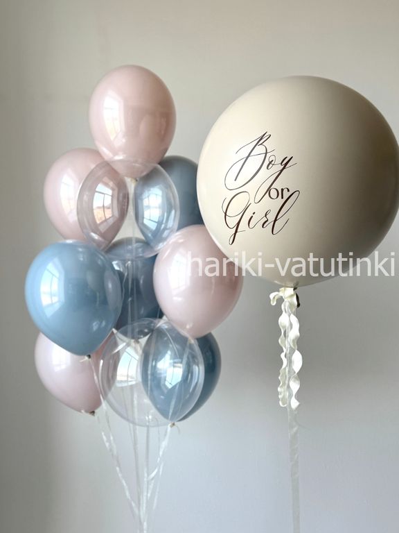 - бежевый гендер шар сюрприз для определения пола будущего малыша;