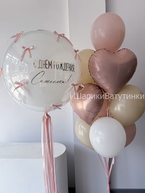 - шар стекляшка с бантиками и надписью;