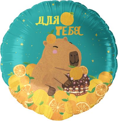 Фольгированный воздушный Шар круг "Капибара для тебя" (45см).