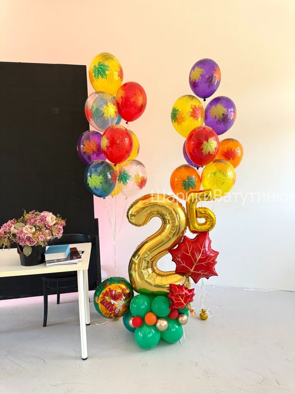 - фольгированная цифра на стойке украшенная фольгированными фигурами (укажите в комментариях нужную цифру и букву).