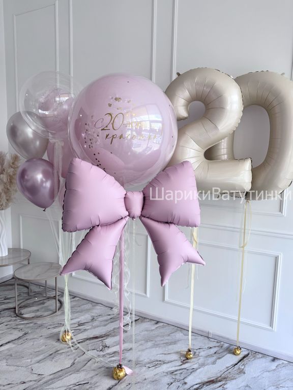 - фонтан из 11 шаров на атласной ленте (шар bubbles , 6 хром, 3 однотонных) .