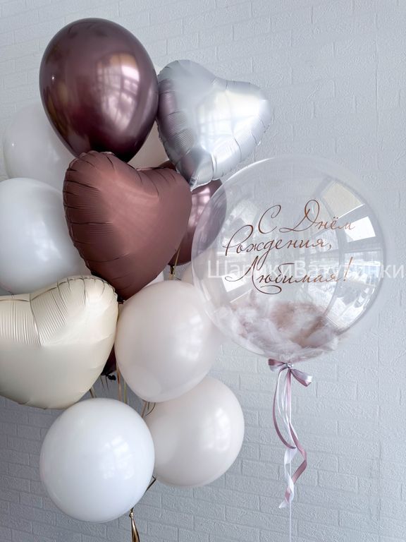 - шар bubbles с перьями и надписью;